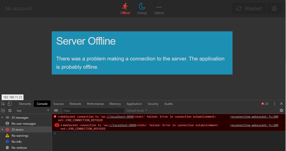 /sync/config/local.iniand/sync/client/config.json? They need to match.@mikegioia Just checked #103 Now server responds to browser from another machine but websocket still try to connect to localhost.