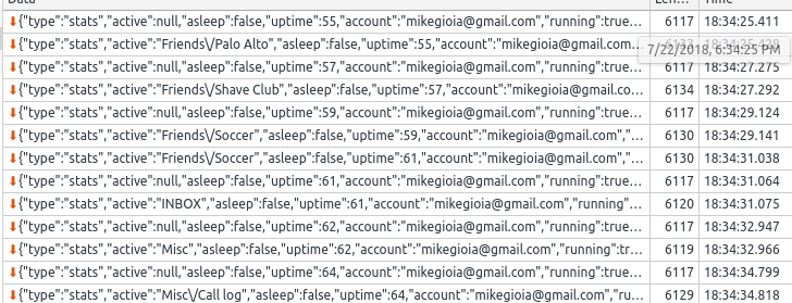 This could be the message sending "null" for active before it starts the next folder:
